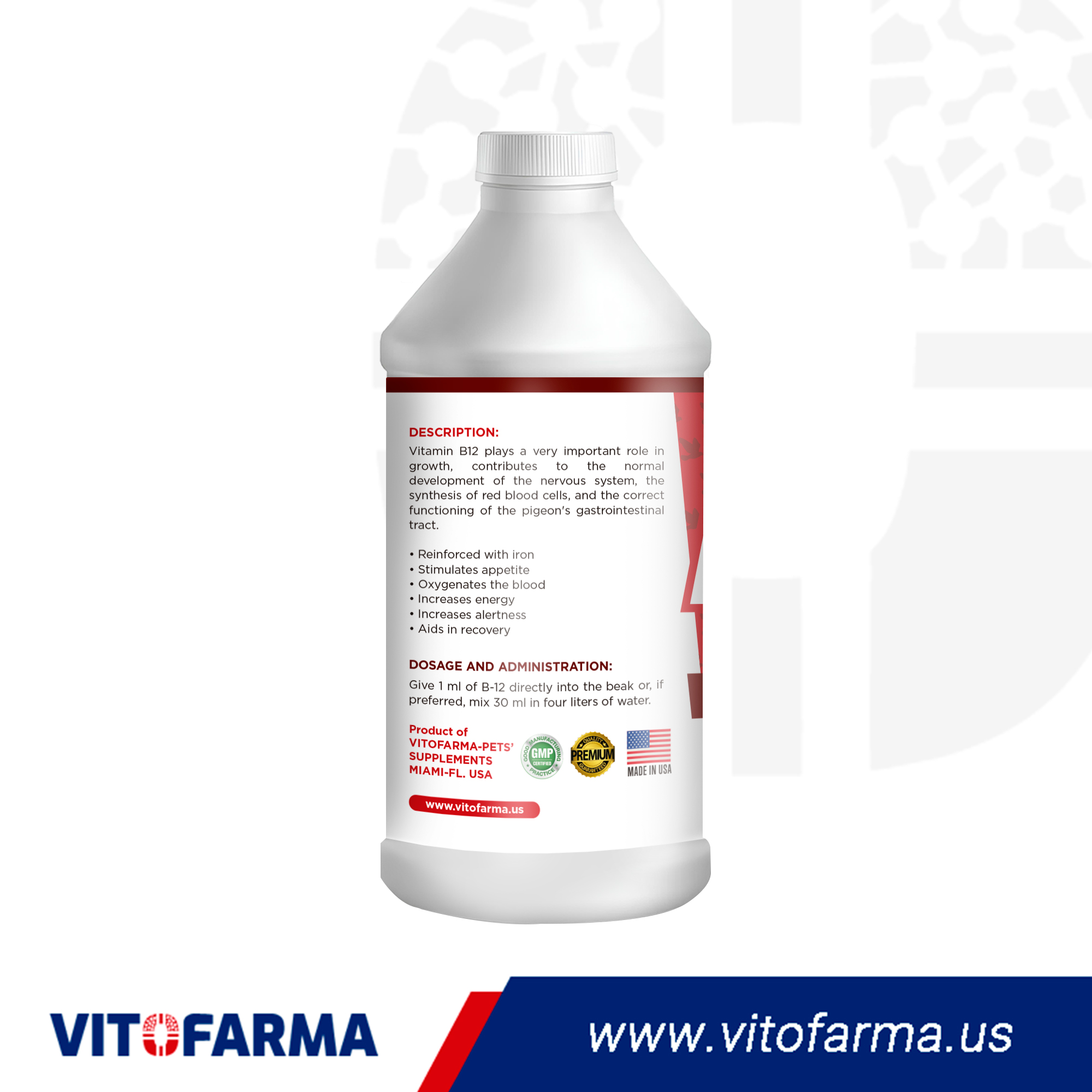 Vitamin B12 plays a very important role in growth, contributes to the normal development of the nervous system, the synthesis of red blood cells, and the correct functioning of the pigeon’s gastrointestinal tract.