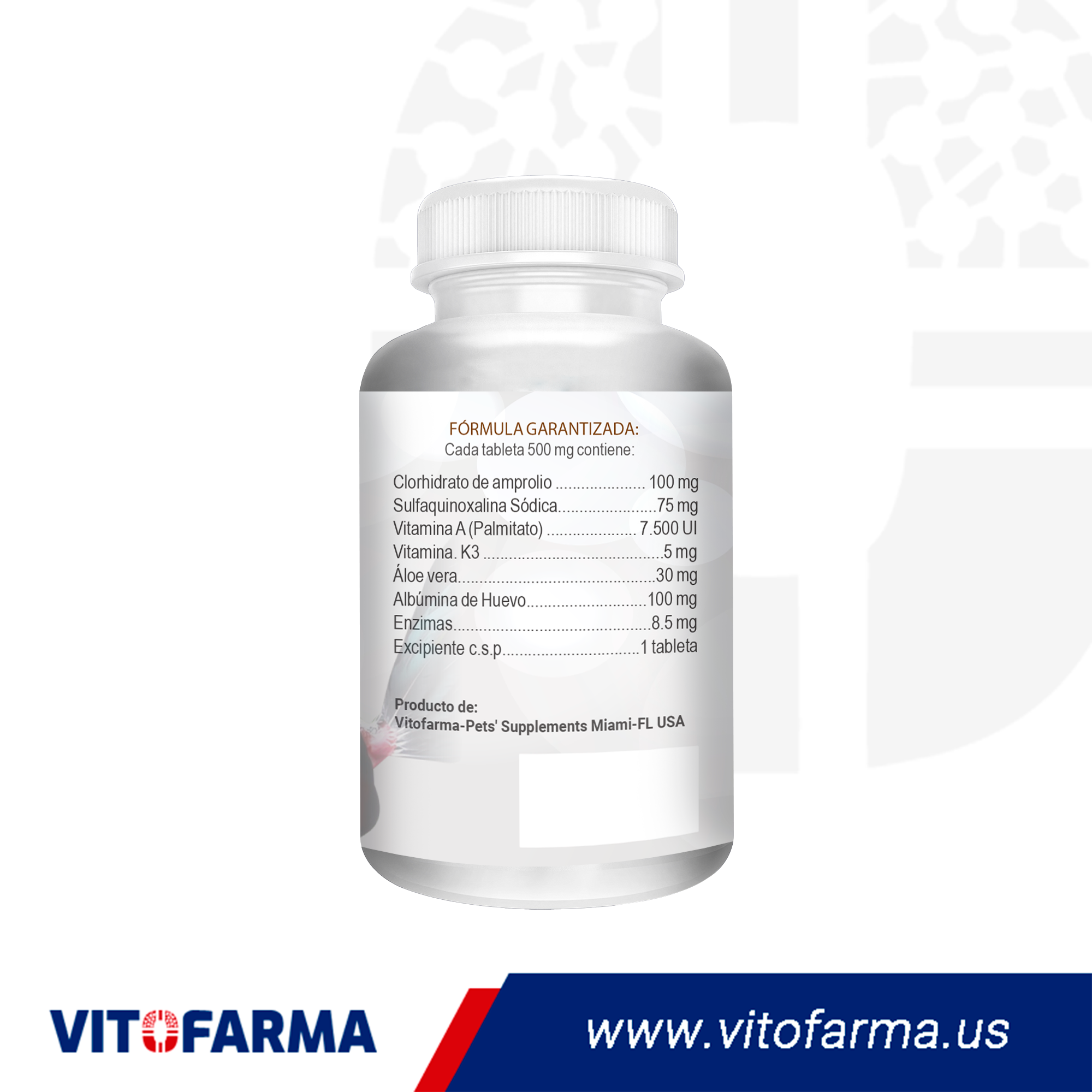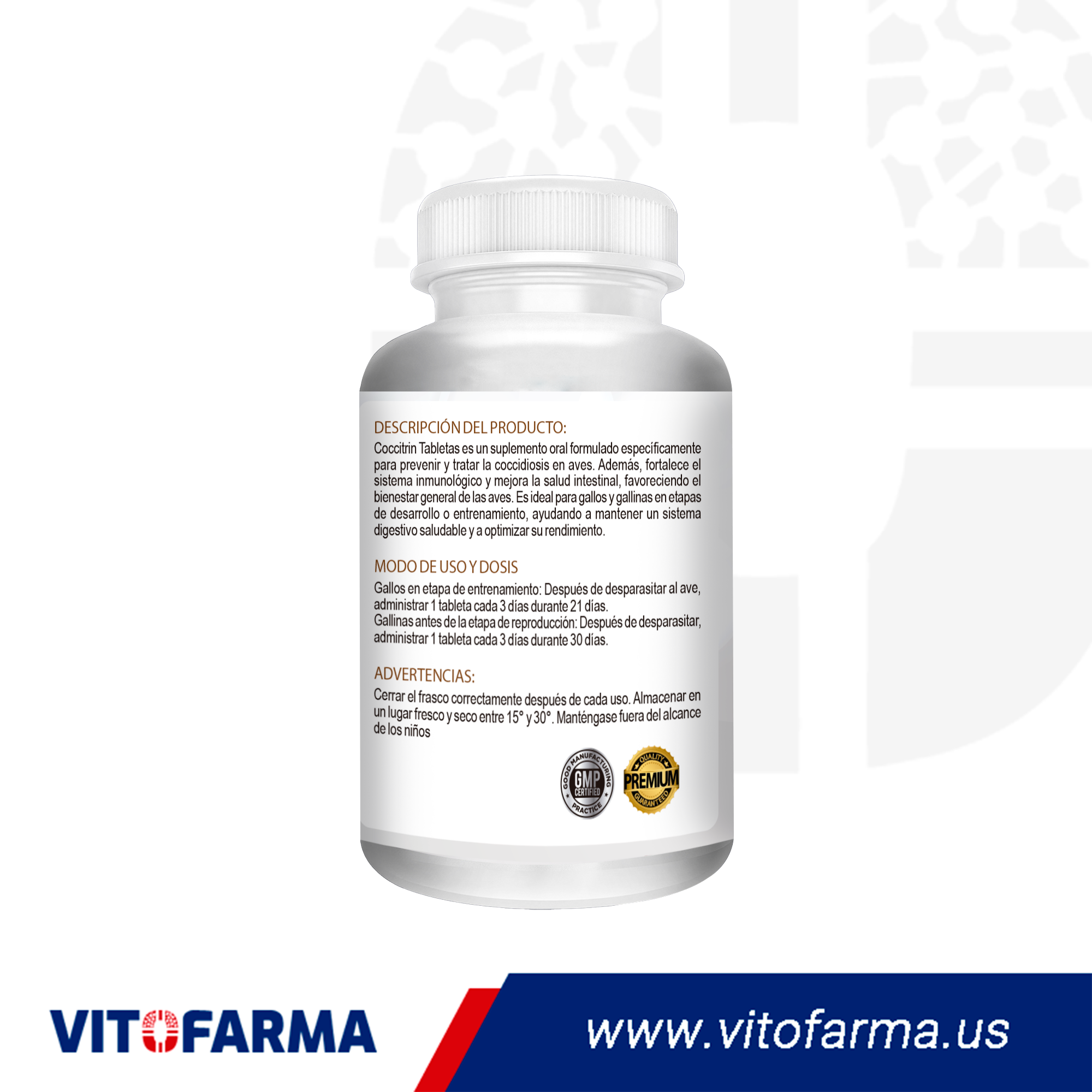 Coccitrin Tablets is an oral supplement specifically formulated to prevent and treat coccidiosis in poultry. Additionally, it strengthens the immune system and improves intestinal health, promoting the overall well-being of the birds. It is ideal for roosters and hens in development or training stages, helping to maintain a healthy digestive system and optimize their performance