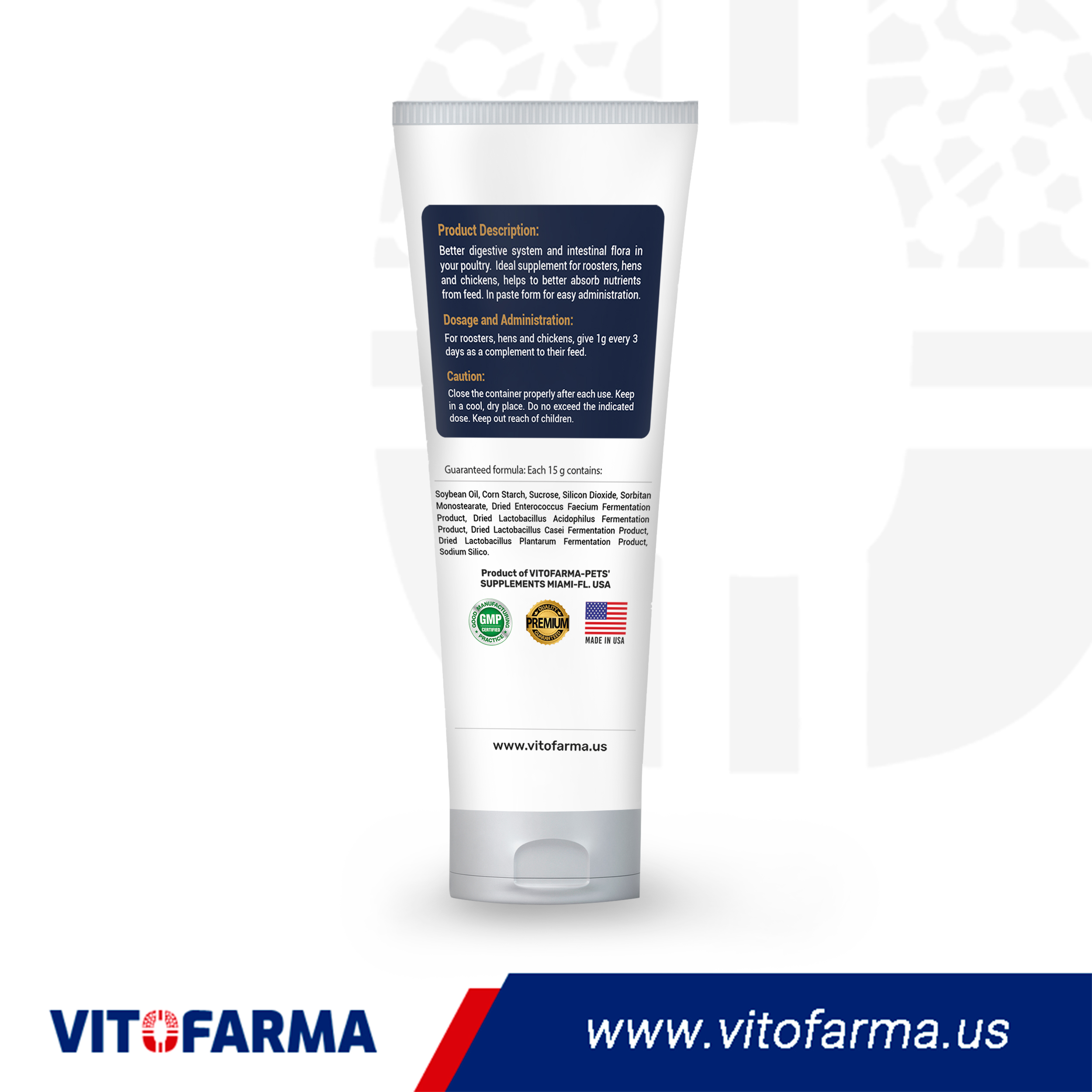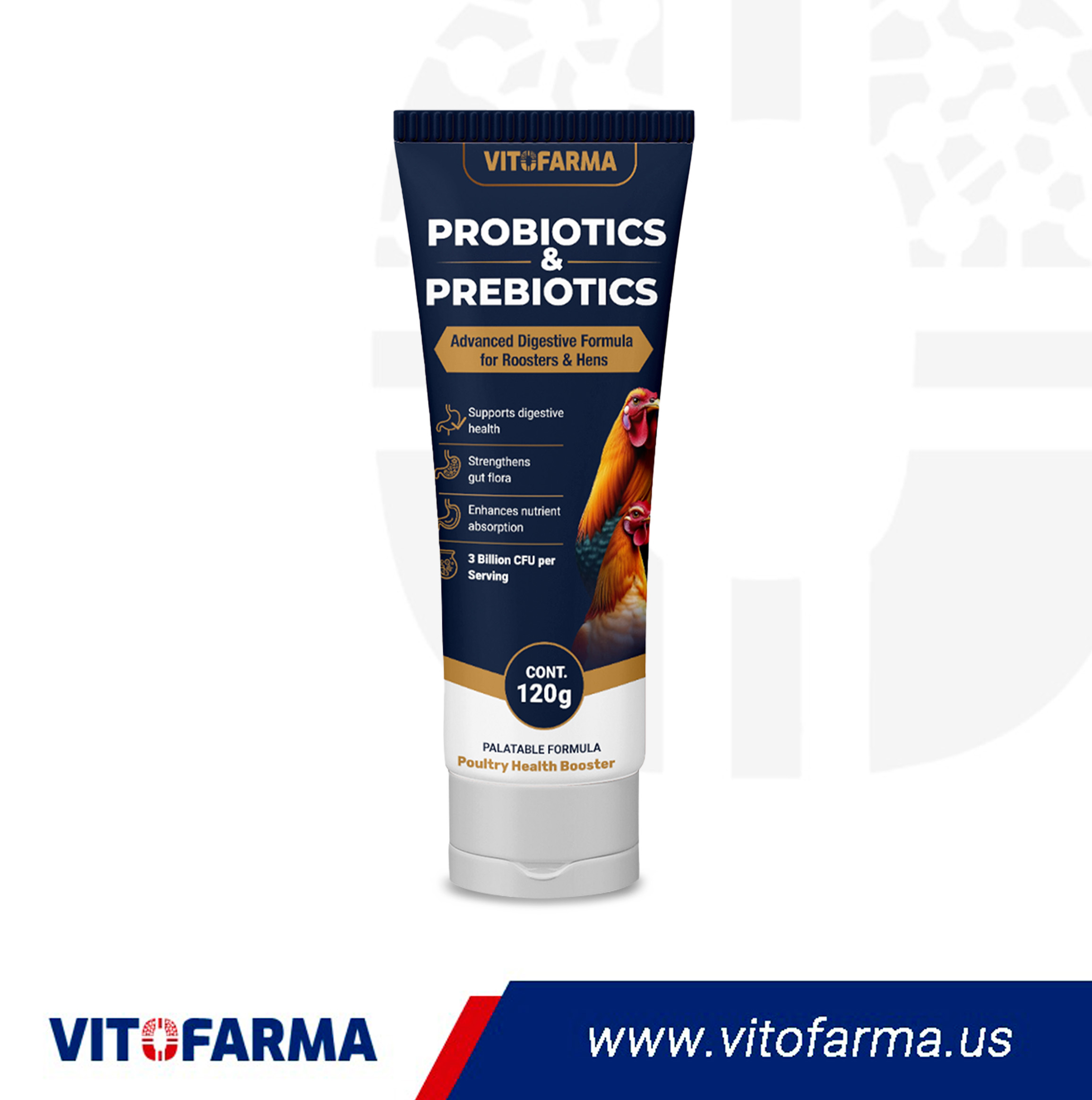 Advanced digestive formula for roosters and hens.